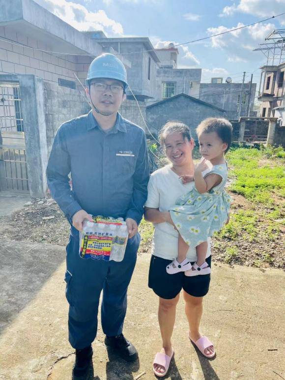 “這么熱的天你們還一直暴曬在太陽(yáng)底下忙著幫我們通電,你們要多喝水防止中暑,要多吃點(diǎn)東西,不要餓著肚子干活”9月18日下午,在海南省澄邁縣金馬大道新村仔農(nóng)場(chǎng)的搶修現(xiàn)場(chǎng),熱心的村民大姐左手抱娃右手提著礦泉水和八寶粥送到搶修人員的手中,搶修隊(duì)員跟大姐握手表示感謝。這一幕溫馨的場(chǎng)景,是公司搶修隊(duì)伍與當(dāng)?shù)厝罕姷摹半p向奔赴”,彰顯了電力施工企業(yè)與人民之間深厚的魚水情誼。在困難與挑戰(zhàn)面前,他們攜手并肩,共同譜寫了一曲動(dòng)人的贊歌。