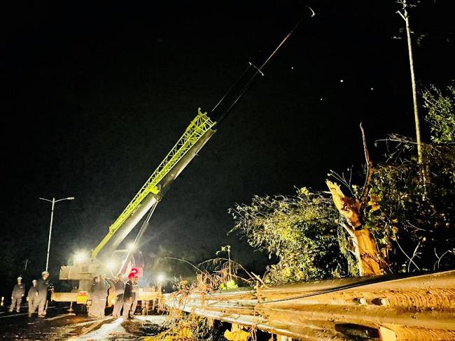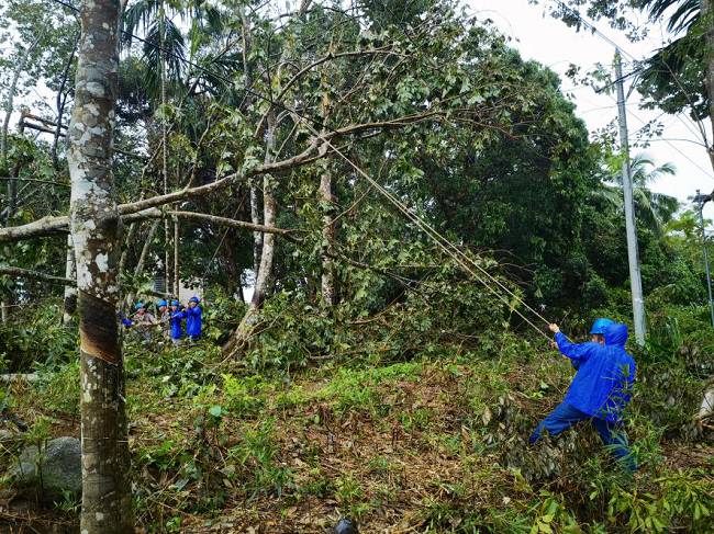 到達(dá)海南后,揭陽(yáng)明利綜合能源發(fā)展有限公司支援海南抗災(zāi)搶險(xiǎn)隊(duì)在澄邁縣緊鑼密鼓開展搶修復(fù)電工作。澄邁地貌相對(duì)平整,但林區(qū)覆蓋率較高,橡膠林香蕉園廣泛分布,臺(tái)風(fēng)摩羯過(guò)境后,林區(qū)樹木倒塌壓垮電線,線路損壞嚴(yán)重。為打通線路搶修通道,加快復(fù)電進(jìn)度,公司搶險(xiǎn)隊(duì)伍一邊組織大型施工機(jī)械快速重新組立電桿,一邊組織人員及時(shí)消缺搶修,力爭(zhēng)以最快速度恢復(fù)線路正常供電。